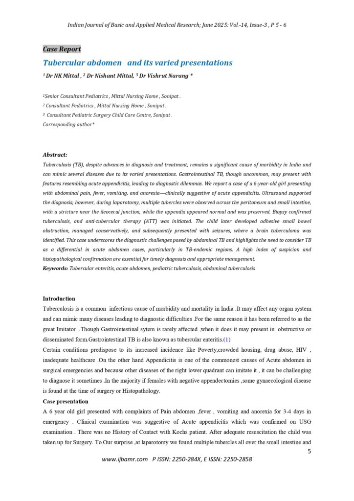Over the past four decades, I have remained deeply committed to advancing pediatric healthcare through not only clinical service but also academic contribution. My research, particularly in the field of pediatric tuberculosis, immunization, neonatal care, and public health, has been published in respected national and international journals.