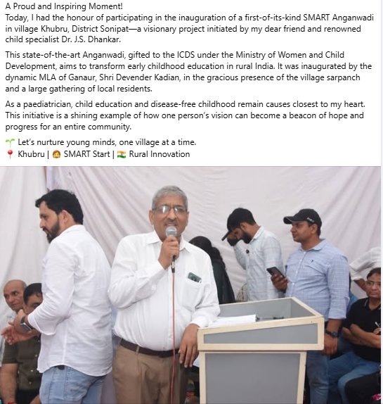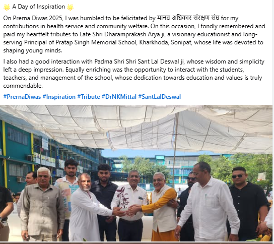 Dr. Mittal conveyed his deep gratitude for the love and respect shown by the village. He extended his heartfelt wishes for the continued progress of Purkhas Rathi—