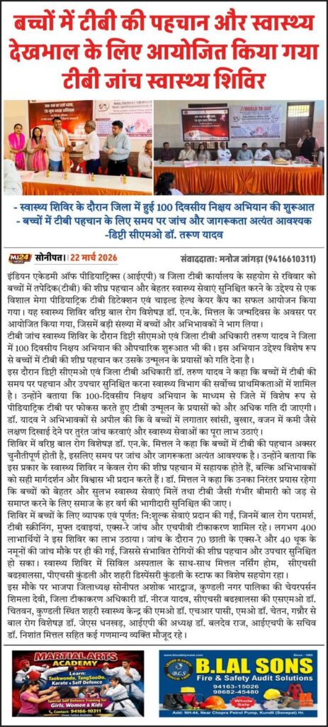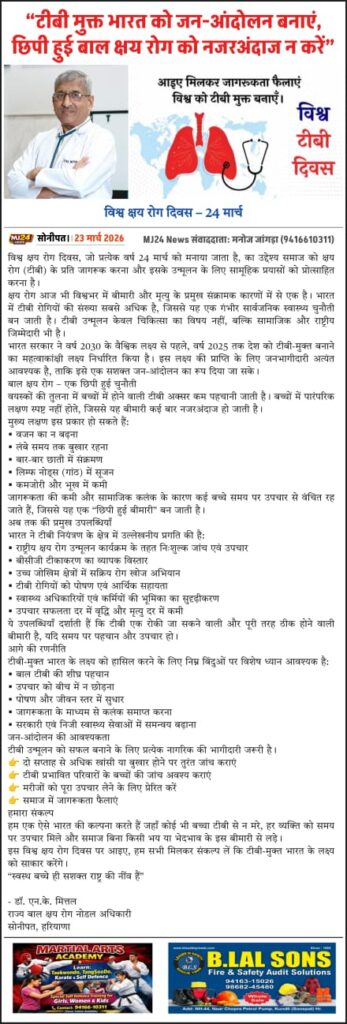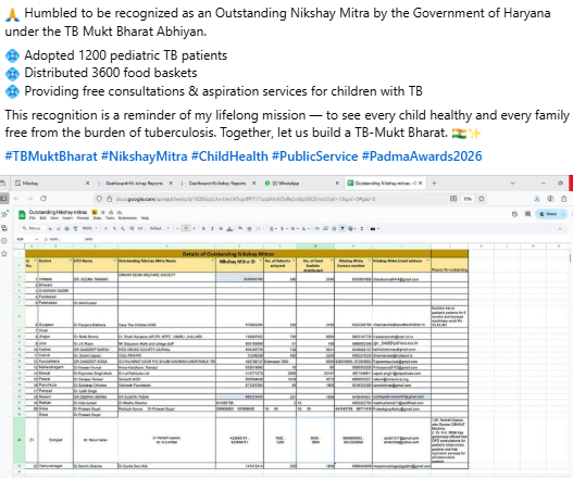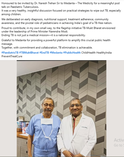 At Mittal Nursing Home, Sonipat, Dr. N.K. Mittal has played a significant role in advancing the TB Mukt Bharat Abhiyan, with decades of dedicated service in pediatric tuberculosis care.