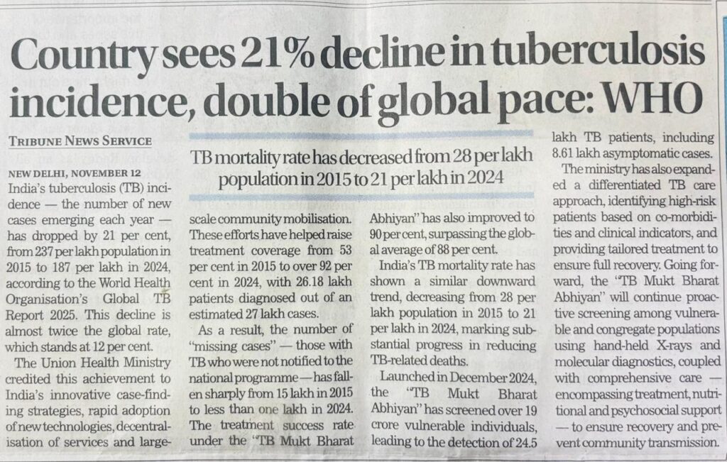 The WHO’s Global TB Report 2025 highlights India’s historic progress: