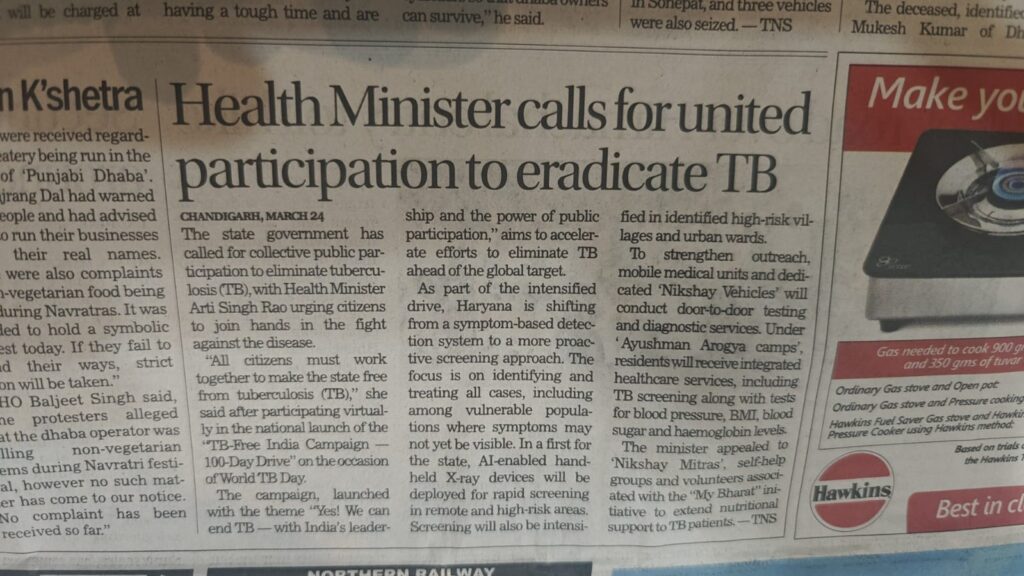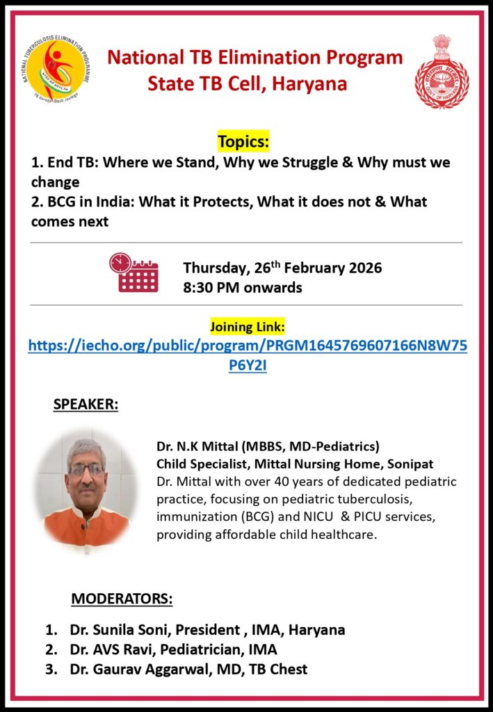 On 3 February 2026, I participated in a State-level online meeting convened by the State TB Cell, Haryana, chaired by the State TB Officer (STO), Haryana, with the participation of all District TB Officers (DTOs) and District Presidents of IMA Haryana, including the DTO, Sonipat.